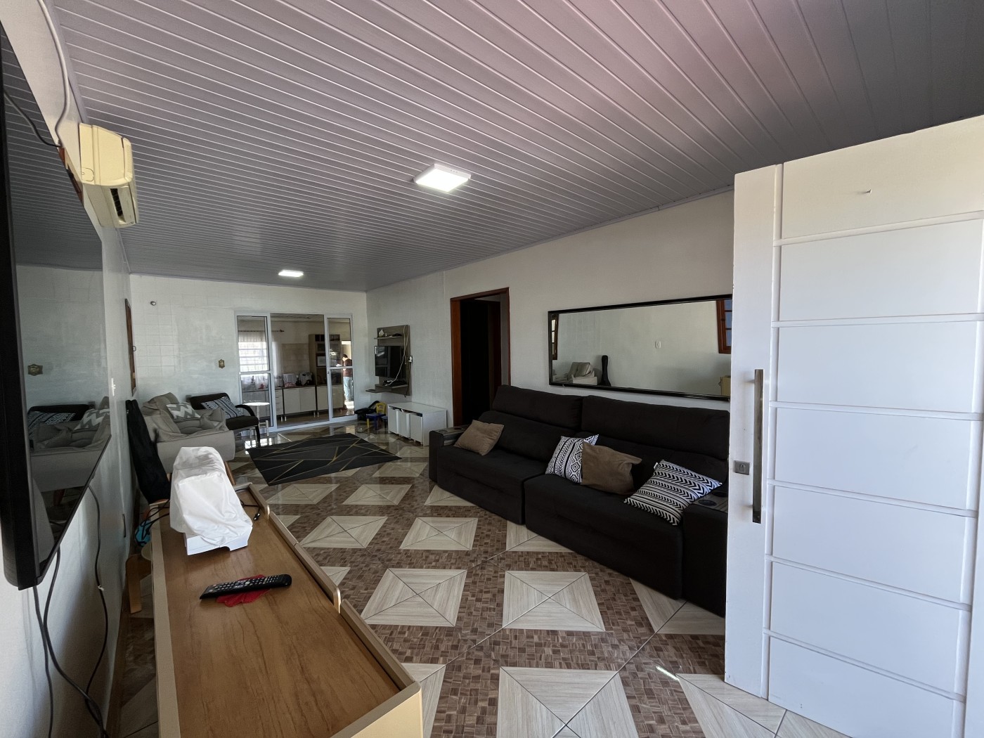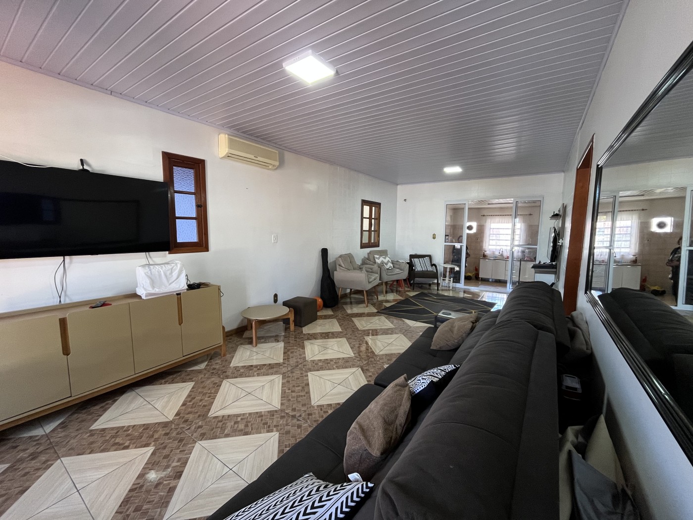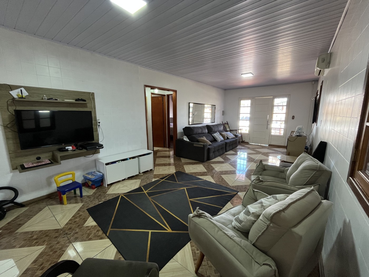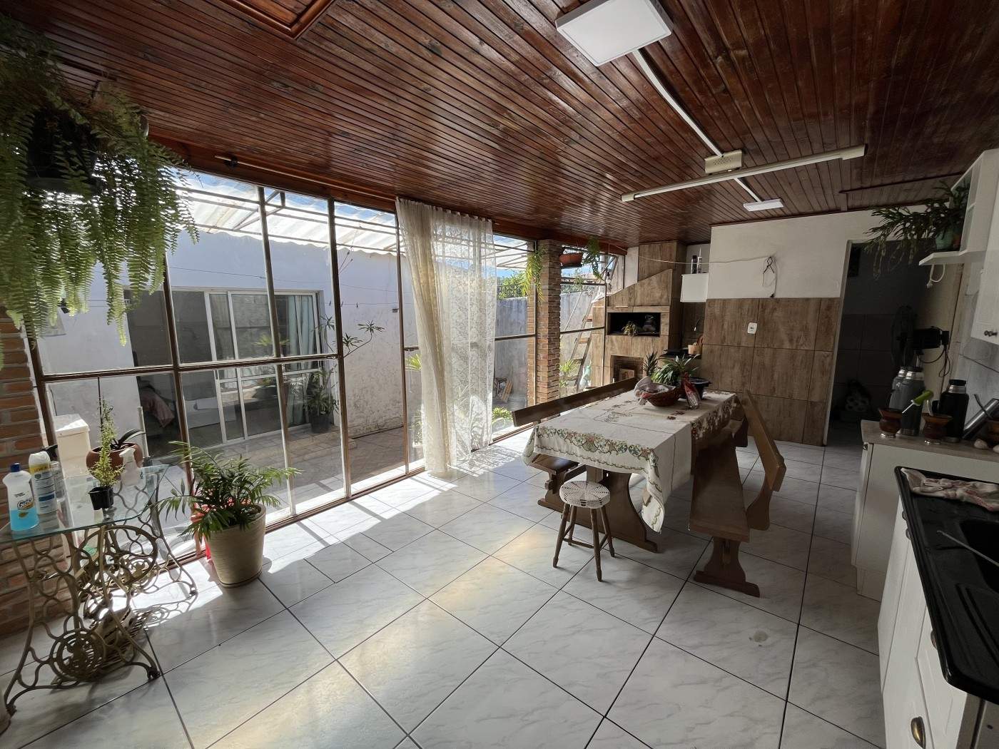Logo na fachada, um aconchegante recuo convida a aproveitar momentos tranquilos ao final da tarde, como um chimarrão em frente à casa. Ao entrar no imóvel, a ampla sala de estar recebe com conforto e conecta-se ao corredor que leva a 2 dormitórios, sendo um deles suíte, além de um banheiro social. A cozinha espaçosa tendo logo a seguir à área gourmet com churrasqueira e banheiro, ideal para receber familiares e amigos. O imóvel conta ainda com uma segunda sala, equipada com lareira, que dá acesso a um terceiro dormitório — também suíte. Esse ambiente possui uma ampla porta envidraçada que garante luminosidade natural, ventilação e acesso direto ao pátio. O pátio bem aproveitado, oferece praticidade para o dia a dia e conta com área de serviço. No total, são duas suítes e três dormitórios bem distribuídos em um terreno de 240 m², combinando funcionalidade, conforto e momentos de convivência.