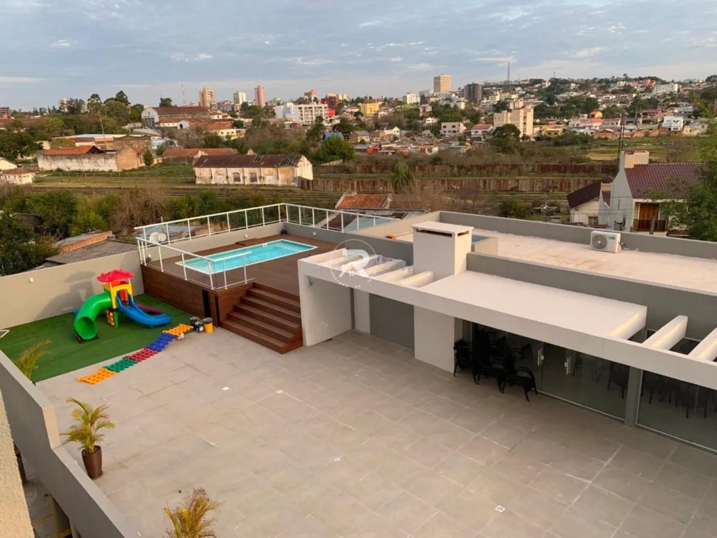 A sala de estar, ampla e iluminada, recebe luz natural direta por ser voltada para a frente do prédio, criando um ambiente acolhedor e agradável. A lareira complementa o espaço, tornando-o ideal para os dias frios da fronteira. A sacada conta com churrasqueira, ampliando as possibilidades de convivência e tornando o ambiente ainda mais versátil.